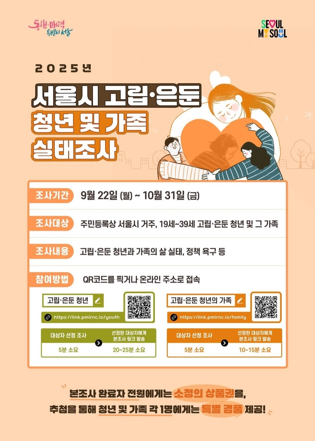 서울시 고립은둔 청년 및 가족 실태조사 참여 요청