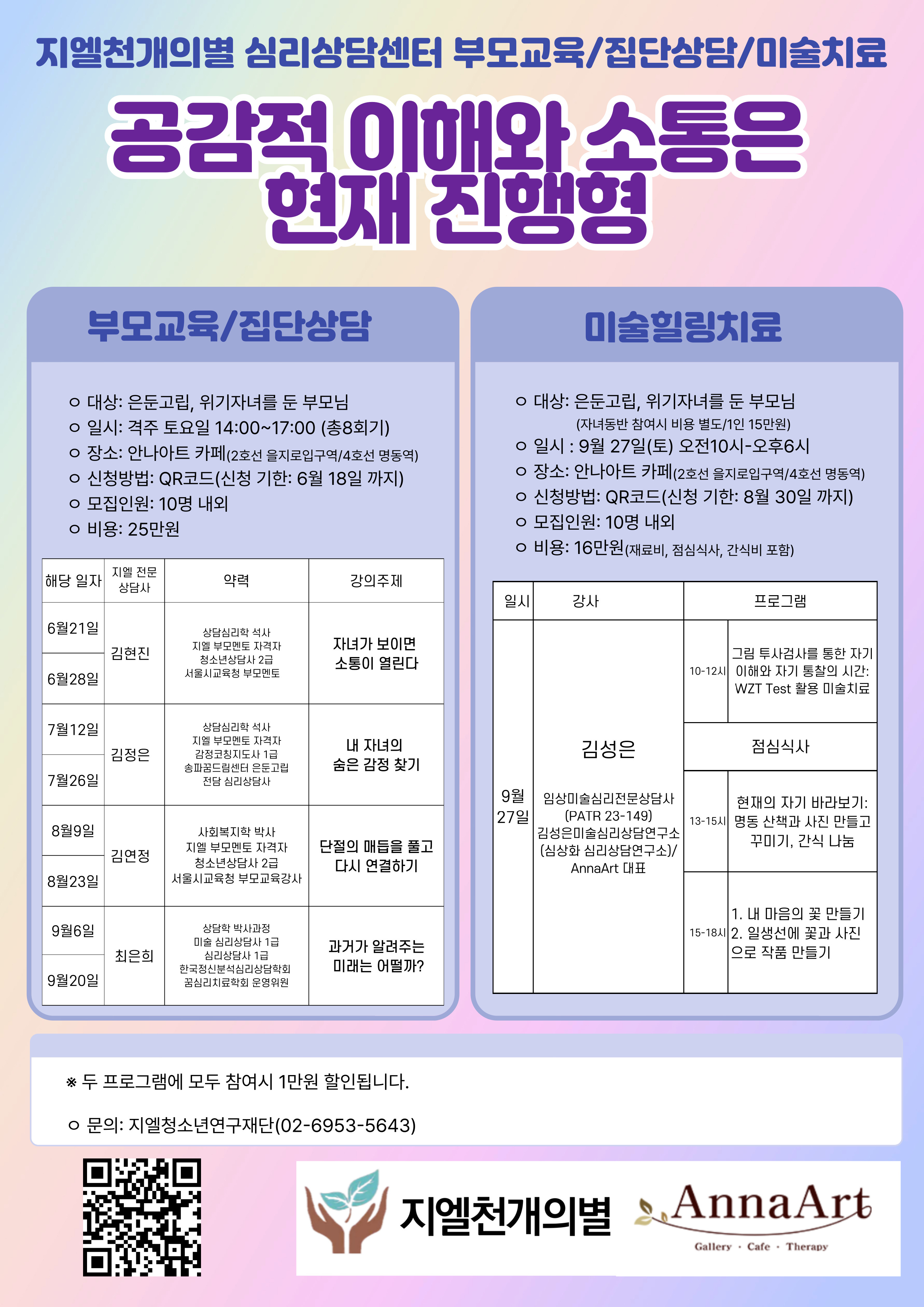 지엘천개의별 심리상담센터, 봄 숨구멍 찾기에 이어 프로그램은 계속 된다. 지엘천개의별 심리상담센터는 은둔고립에 특화된 심리상담을 제공한다. 부모로서 역경을 딛고 심리상담사가 된 분들이 주축이다. 그러기에 부모의 어려움에 대해 더할 나위 없이 공감하며 문제 해결을 돕는다. 아쉽지만 심리상담센터 프로그램은 유료이다. 지엘이 계속 지속하기 위해.... 5명의 상담사가 one 팀으로 여러분과 함께 합니다. 유래카 합시다!!! 신청은 아래 구글폼에.